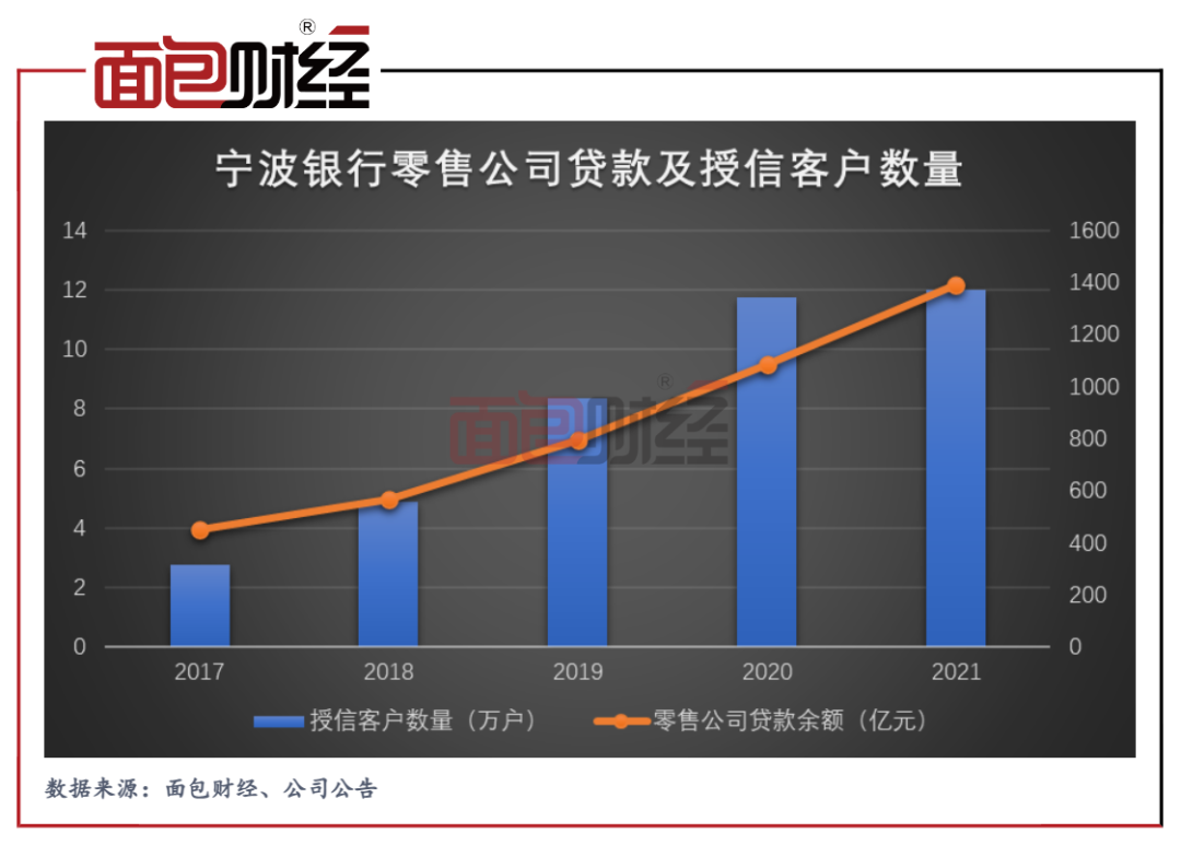 報(bào)告期內(nèi),該行加大資源傾斜,增加普惠小微貸款的投放力度,不斷優(yōu)化小微企業(yè)融資的產(chǎn)品、流程和服務(wù)。截至2021年末,寧波銀行報(bào)告期末,零售公司授信客戶12萬(wàn)戶,貸款余額1392億元,較上年末增加307億元,增幅為28%。