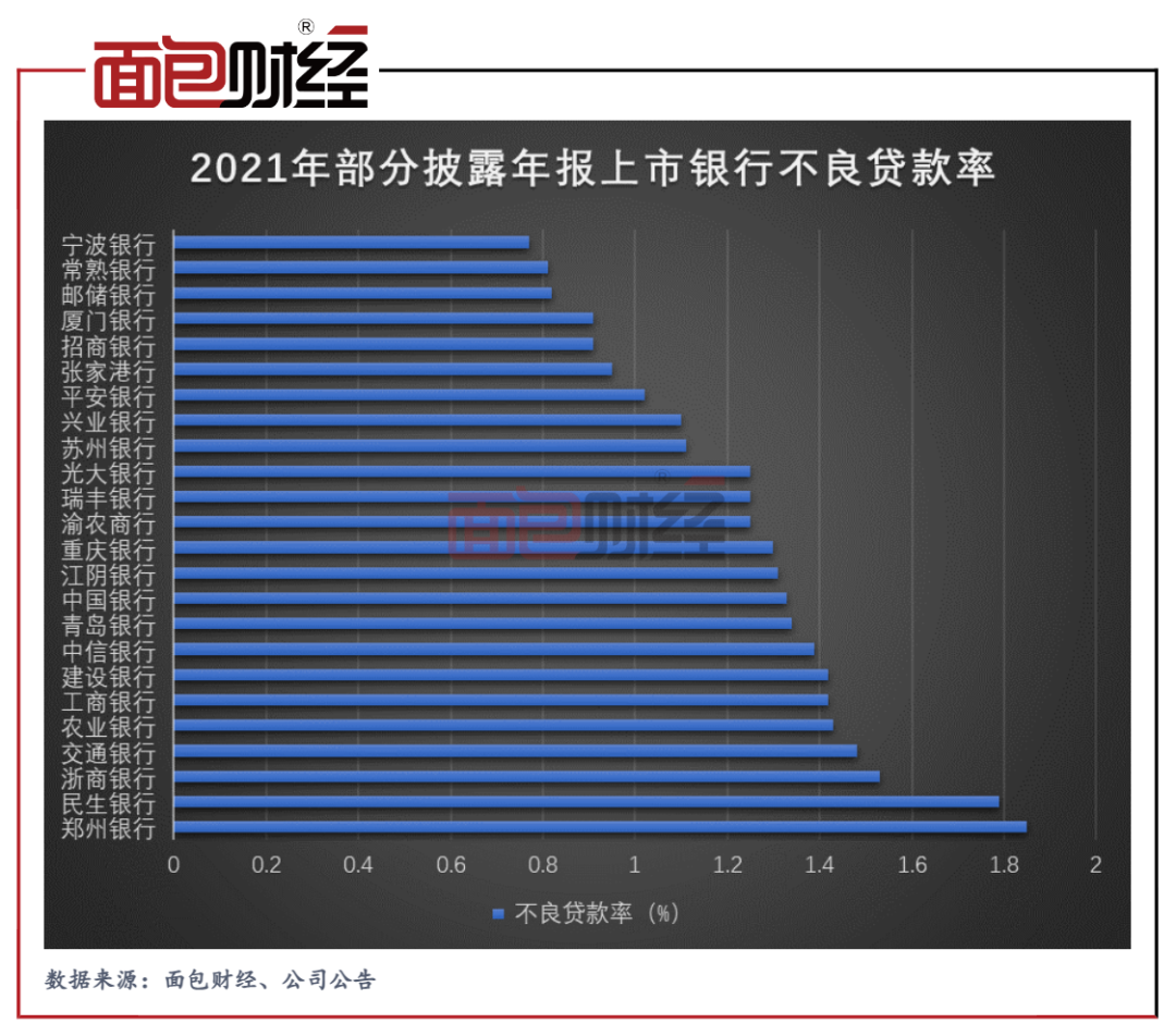 與其他上市銀行相比,寧波銀行的資產(chǎn)質(zhì)量?jī)?yōu)勢(shì)較為明顯,截至2021年4月8日,在已披露2021年年報(bào)的上市銀行中,寧波銀行的不良貸款率最低。