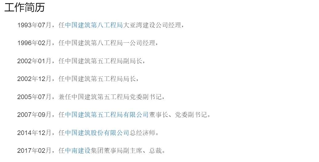 曾為中國建筑第五工程局有限公司董事長、中國建筑股份有限公司總經(jīng)濟師