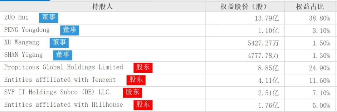 最新的股權(quán)比例顯示,左暉作為公司董事,持有貝殼找房38.8%的股份,截至美東時間5月20日收盤,貝殼找房的股價為49.89美元,市值590.74億美元,相比高峰時跌去了22%左右,但之于去年8月上市時來說增幅大概為35%。