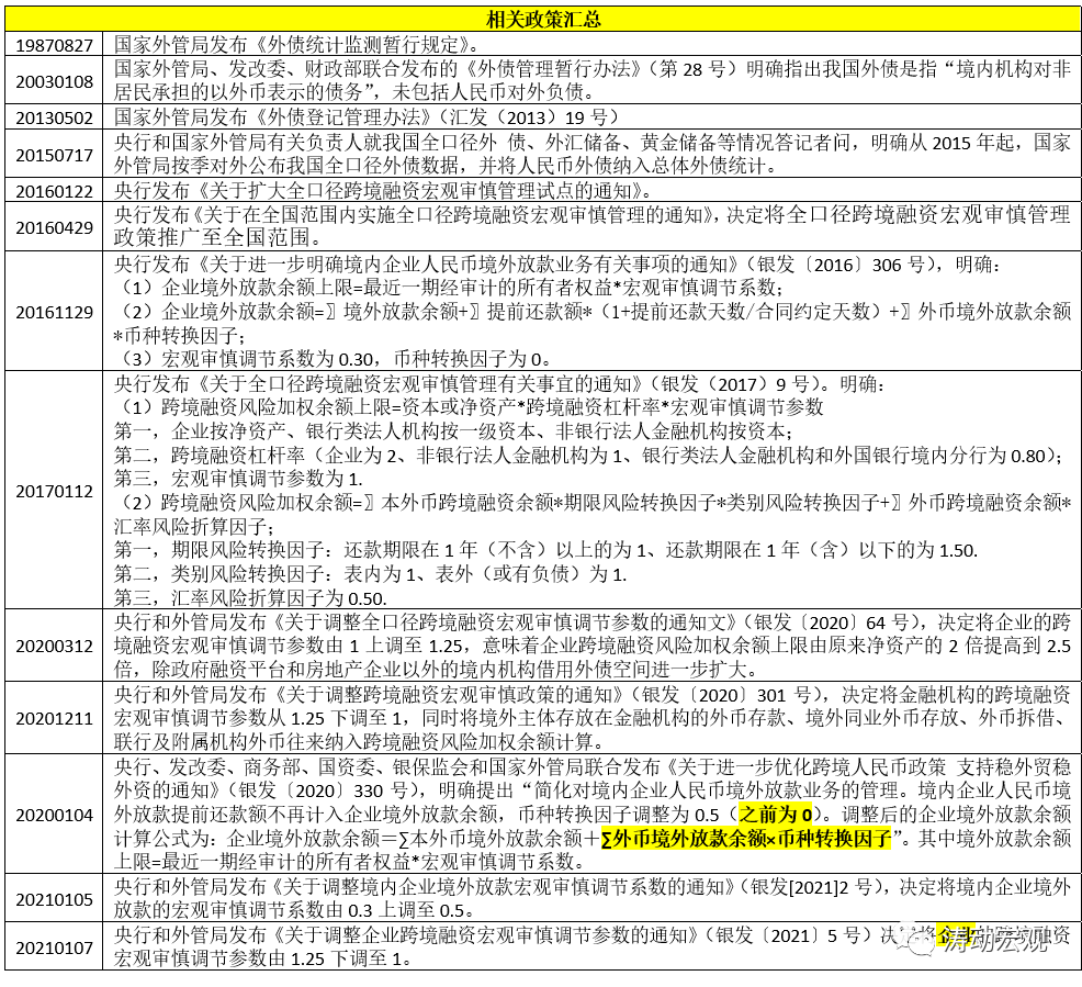 (一)在資金進(jìn)來層面,主要通過2017年1月央行發(fā)布的《關(guān)于全口徑跨境融資宏觀審慎管理有關(guān)事宜的通知》(銀發(fā)(2017)9號(hào))來約束,這里的約束對(duì)象既包括銀行,也包括非金融企業(yè)。