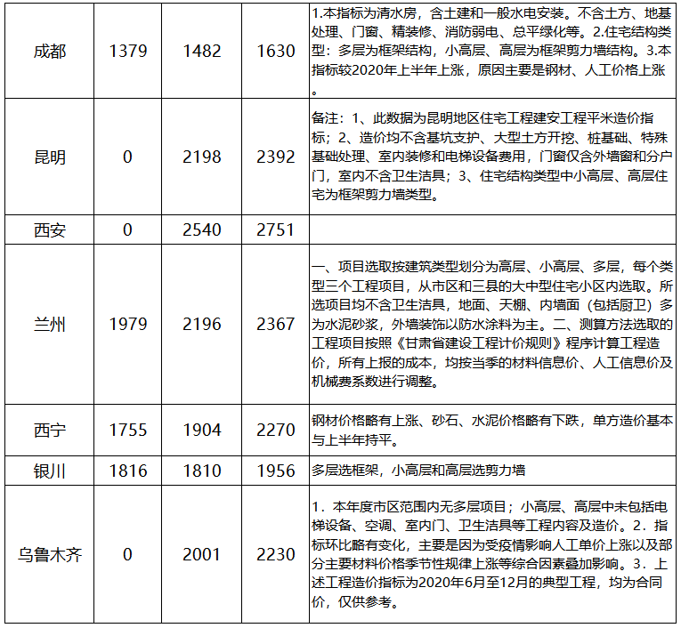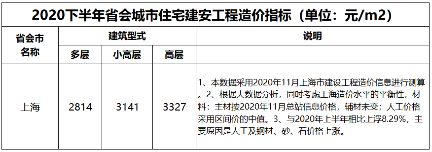 “2020下半年全國省會住宅建安成本”一覽表,全網(wǎng)最新建安成本統(tǒng)計!