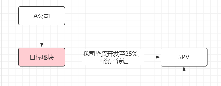 1.【直接資產(chǎn)轉(zhuǎn)讓】:我司成立SPV公司,用以受讓目標地塊的土地使用權(quán);但由于當?shù)卣畬τ谕顿Y額25%的要求限制,我司要求A公司將土地使用權(quán)抵押給我方,然后由我司墊資開發(fā)至轉(zhuǎn)讓要求后轉(zhuǎn)讓土地使用權(quán)。這種方式流程周期較長,且不可控因素較多。。