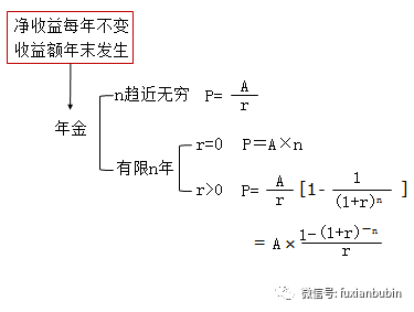 當收益永續(xù),各因素不變時,其計算公式為:P=A/r