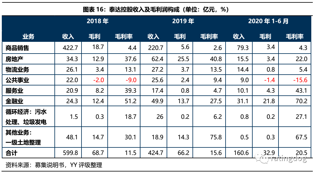 泰達控股為天津市級發債平臺之一,資產規模較大,涉足產業較多,以參控股的方式涉及商品銷售、金融、區域開發、公用事業、物流等多個板塊,業務屬性上屬于產投平臺,但公司同時承擔著天津濱海新區內部分功能區的水電氣熱等能源供應、公共交通和市政道橋等基礎設施的建設和運營,因此仍劃分為城投。公司財務杠桿很高(75.26%),尤其是短期償債壓力很大,截至20Q3短債超830億,而貨幣資金僅219億元。整體來看,公司經營屬性強,公益性偏弱,融資壓力很大。