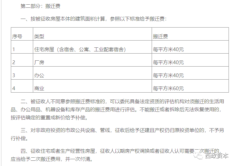 簽約獎勵、搬遷費、過渡安置費、停產停業補償、清租費、裝修補償等。