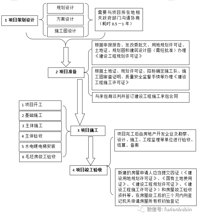 房地產(chǎn)開發(fā)建設(shè)過程可以細(xì)分為四個(gè)階段:分別為項(xiàng)目策劃設(shè)計(jì)階段、項(xiàng)目準(zhǔn)備階段、項(xiàng)目施工階段和項(xiàng)目竣工驗(yàn)收階段。