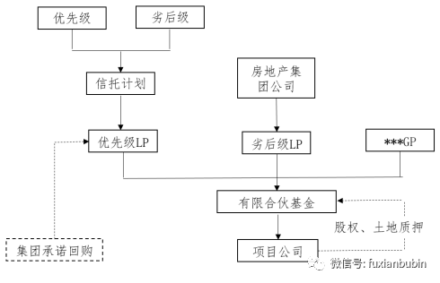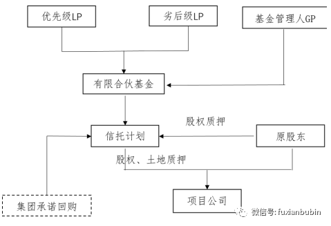 如果需要進(jìn)入較為穩(wěn)健的大量資金,還需要集團(tuán)予以承諾回購(gòu),并提供股權(quán)、土地的質(zhì)押,其交易結(jié)構(gòu)基本如下: