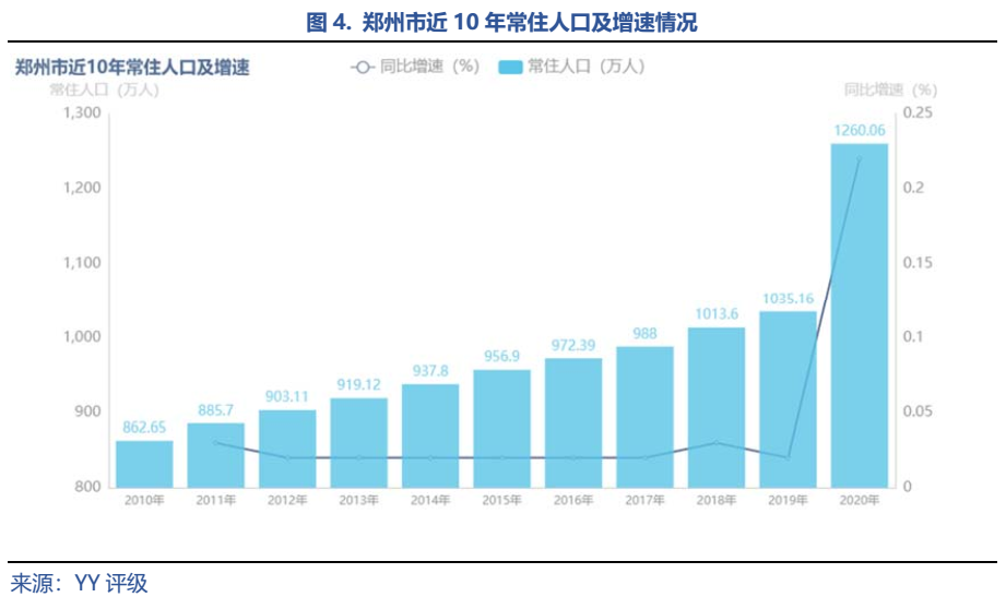根據(jù)最新的七普數(shù)據(jù),鄭州常住人口達(dá)1,260.06萬人,較2010年的六普人口數(shù)據(jù)增長46.07%,年平均增長率為3.86%。七普數(shù)據(jù)一出,鄭州成為當(dāng)之無愧的黑馬,瞬間搶走了武漢中部人口“第一城”的稱號,并順利躋身我國省會城市人口四強(qiáng)。而在當(dāng)前各大城市激烈的搶人大戰(zhàn)中,人口的凈流入情況是一座城市吸引力、乃至綜合實(shí)力的直觀參照,鄭州的人口吸引力或許一直被低估了。