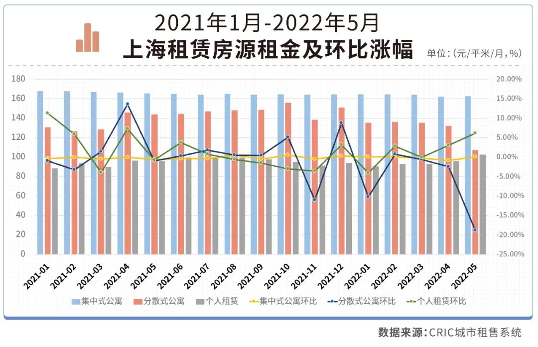 上海個人房源租金在疫情期間的4月和5月出現了“兩連漲”。