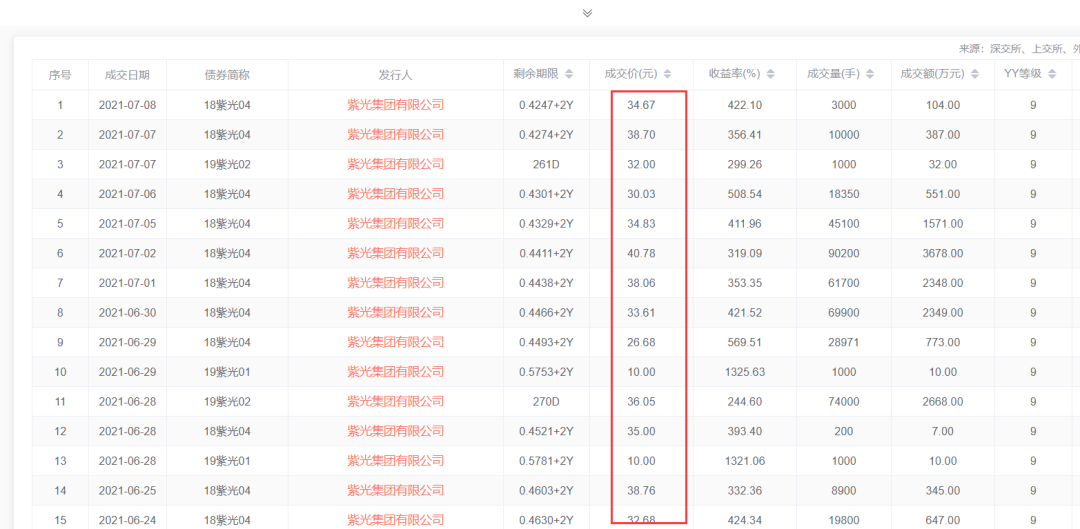 3、發行才3個多月就打對折的債出現了。寶能下屬鉅盛華的債21深鉅01連續兩天有凈價50的成交,作為當年的風云人物,姚老板在退出萬科大股東之爭以后,用深業物流和鉅盛華兩個主體進入債券市場,但是票面齊刷刷的6.0 6.5 7.0 7.5%,我也從沒有碰到過能夠入庫的買方機構。