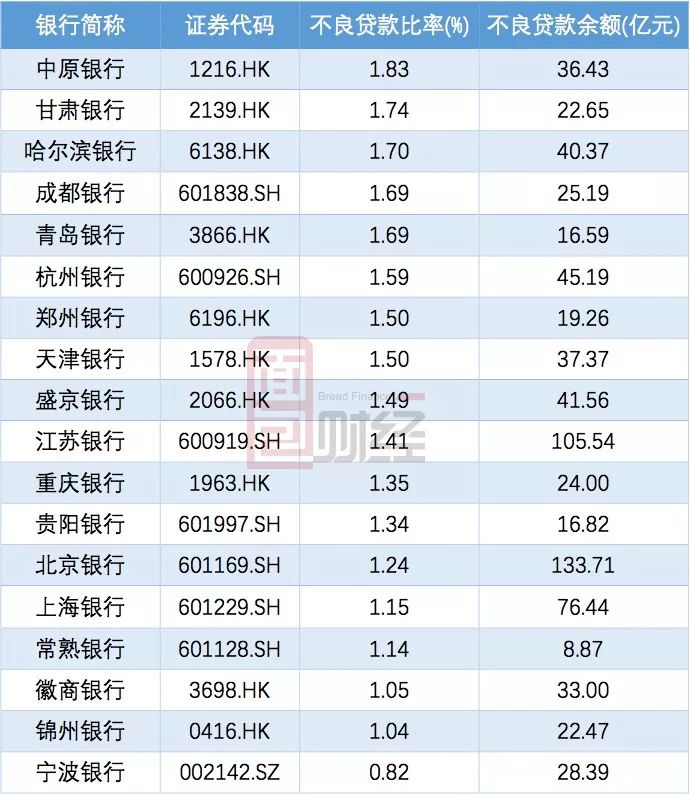 在18家上市城商行中,鄭州銀行的不良率排名第7位,與天津銀行相同。排名在首位的是同樣位于河南的中原銀行,不良率高達(dá)1.83%。