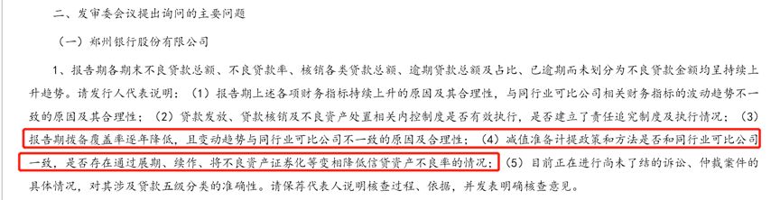發(fā)審委關(guān)注鄭州銀行的逾期貸款大幅增長情況,是有道理的。逾期貸款往往會牽涉到不良貸款的認(rèn)定情況,這直接影響的是不良貸款率,而不良貸款認(rèn)定的松緊,則又會涉及貸款減值的問題,最終影響的就是利潤。