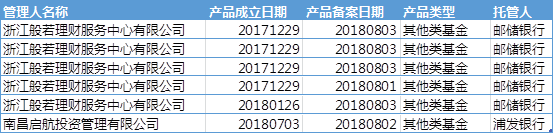 8月初備案通過的其他類基金,5只均為浙江當地國企般若理財發起的,專注于不良資產收購方向的產品。