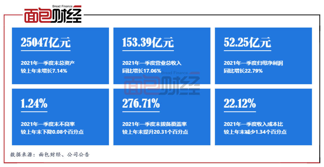 得益于增量風險防控和存量風險緩釋,該行的不良率持續走低。截至2021年3月31日,該行的不良貸款率為1.24%,較上年末下降0.08個百分點。