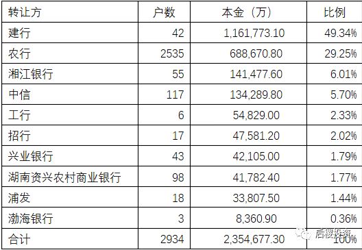 受讓方 | 戶數(shù) | 本金(萬) | 比例 |