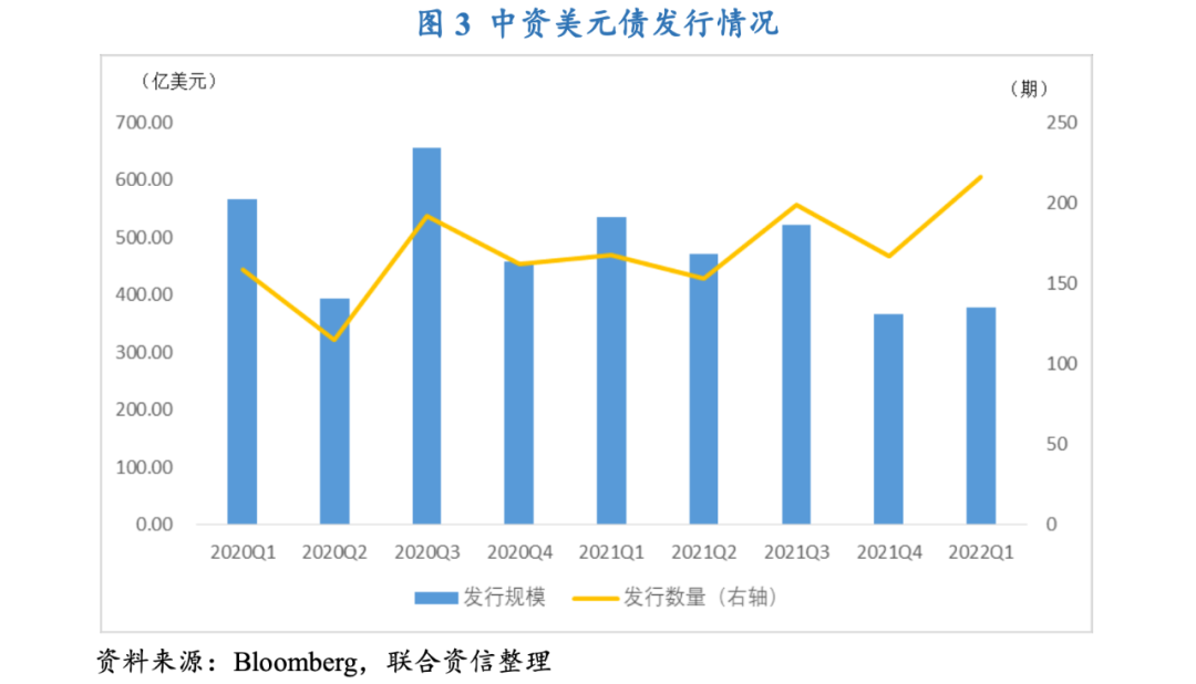 美聯(lián)儲(chǔ)加息疊加地緣政治風(fēng)險(xiǎn)升級(jí),帶動(dòng)美元幣值大幅走高,中國(guó)一季度外貿(mào)強(qiáng)勁對(duì)人民幣匯率形成有利支撐,為中資美元債發(fā)行提供相對(duì)穩(wěn)定的匯率環(huán)境
