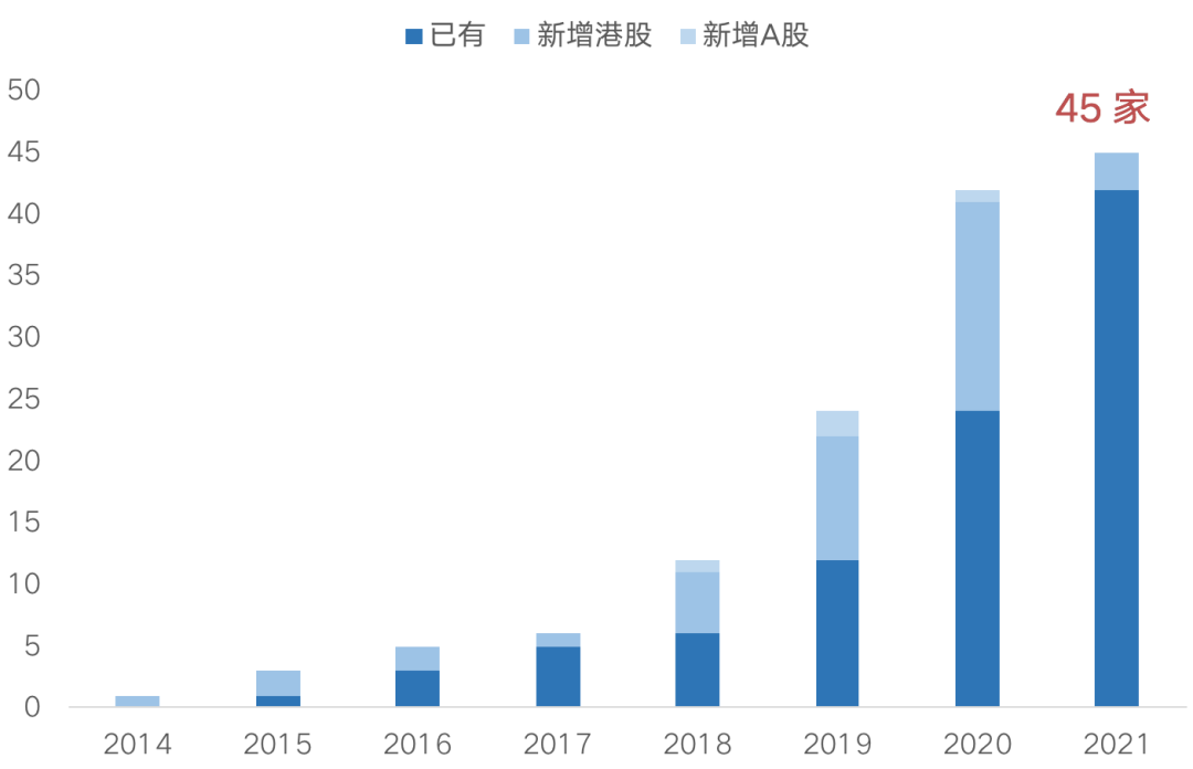 與地產股市值整體下滑不同,物業股市值正呈現快速上漲的趨勢。一方面,與新入場企業快速增加有關。在資本助力下,物企上市熱潮不減,2020年已有18家企業新進入資本市場,創歷史新高。另一方面,雖然2020年下半年物業板塊股價出現短暫波動,但從整體來看2020年全年仍取得了16.33%的漲幅,同期恒生指數跌幅僅為3.52%。物業股入場企業的增多及股價的相對穩定,使得整體市值迅速提升。