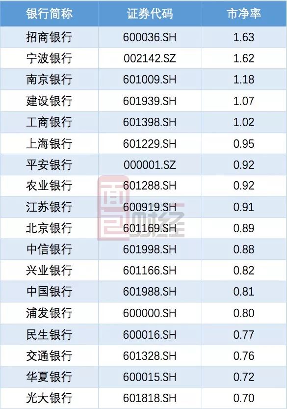 統(tǒng)計顯示,上述18家銀行的市凈率平均值為0.96倍,中位數(shù)為0.9倍。銀行股集體破凈除了股價走勢疲軟之外,還有一個原因則是估值切換因素。隨著每股利潤累計,在公布2017年財務數(shù)據之后,在股價不變的情況下,市凈率也會下降。