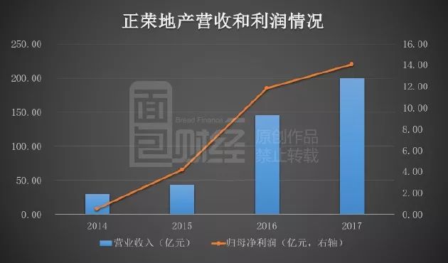 年報顯示,2017年正榮地產營業收入199.95億元,同比增長36.9%;歸母凈利潤為14.09億元,同比增長19.1%。