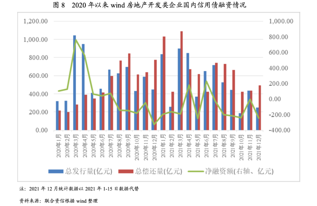 ●融資端——房地產行業融資持續收緊,預計2022年房企融資環境仍不樂觀