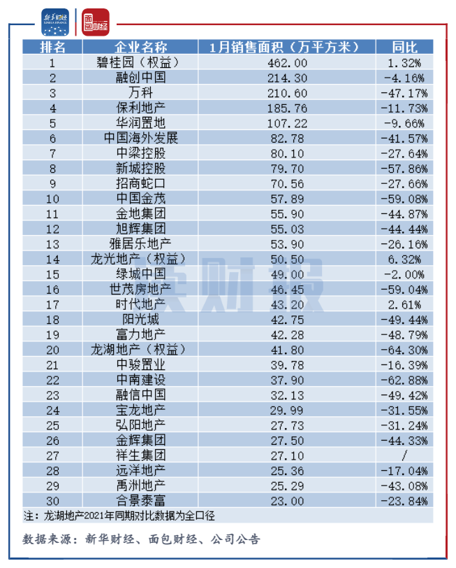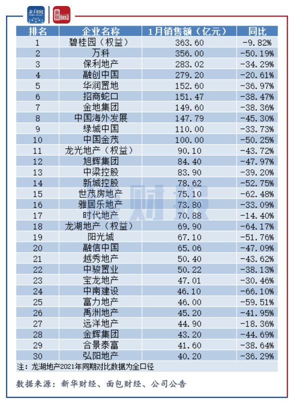 原標題: 【讀財報】萬科“領銜”低開 TOP30房企1月銷售額同比降逾四成