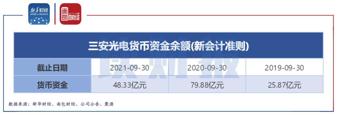 近日,三安光電回復上交所下發的信息披露監管工作函,從回復中注意到,截至三季度末公司貨幣資金余額為48.33億元,同比下降39.49%,系公司項目投資增加所致。經公司測算,目前公司流動資金缺口高達51.4億元,并且目前公司主要在投的三個項目仍需繼續投入資金逾264億元,資金需求壓力較大。
