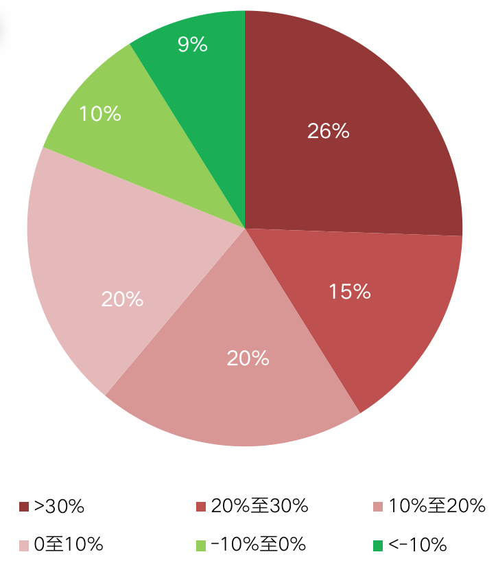 截至2020年末,這部分規(guī)模上市房企的全口徑業(yè)績(jī)?cè)鏊購(gòu)?019年的19%放緩至12.6%。45家企業(yè)中,30家房企增速有明顯放緩,4家房企業(yè)績(jī)轉(zhuǎn)向負(fù)增長(zhǎng)。作為目前行業(yè)百?gòu)?qiáng)中的領(lǐng)軍企業(yè),這部分規(guī)模上市房企業(yè)績(jī)?cè)鏊俚姆啪徱彩悄壳靶袠I(yè)壓力加劇的信號(hào)。
