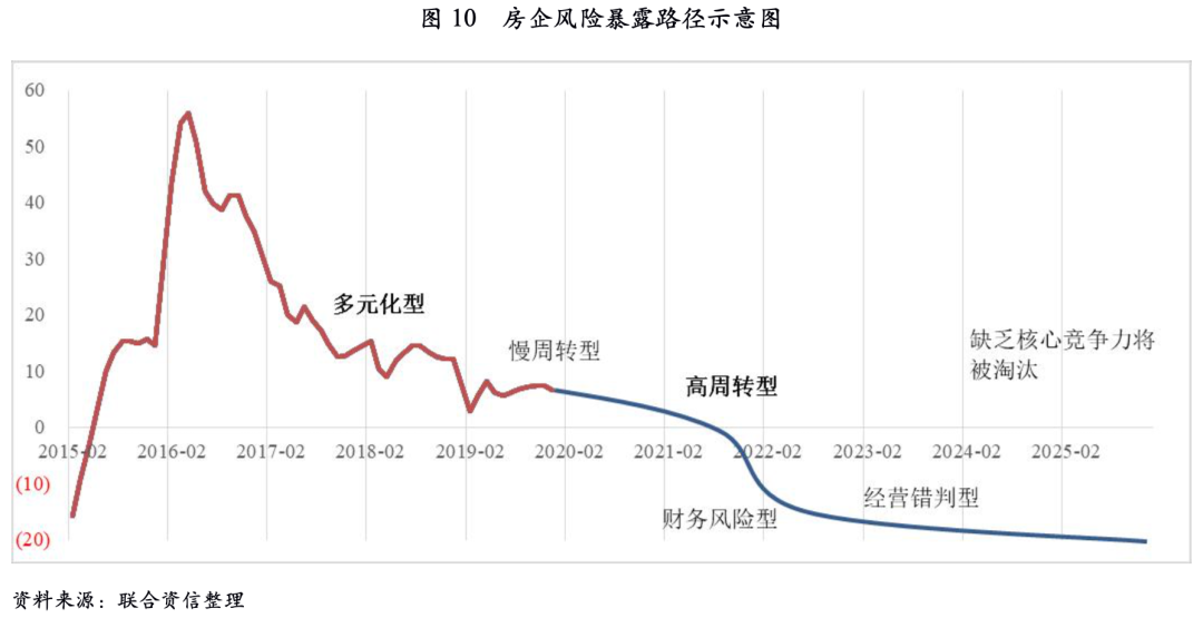 根據(jù)上文分析,人口周期的斷檔、購買力的下降可能導(dǎo)致房地產(chǎn)在中長周期內(nèi)仍將面臨較長時(shí)間的下行階段。當(dāng)長期內(nèi),若房地產(chǎn)市場容量發(fā)生大幅萎縮,需求支撐不足、銷售競爭激烈、房企回款壓力大將導(dǎo)致房地產(chǎn)行業(yè)整體利潤率進(jìn)一步下滑,盈利能力較弱、缺乏核心競爭力的房企在中長期內(nèi)將逐步暴露風(fēng)險(xiǎn)或進(jìn)行轉(zhuǎn)型。在上述環(huán)境下,即使企業(yè)財(cái)務(wù)較穩(wěn)健且經(jīng)營不存在重大預(yù)判,但若該企業(yè)自身在項(xiàng)目品質(zhì)、運(yùn)營管理能力、成本控制能力、優(yōu)質(zhì)土儲(chǔ)等方面不存在核心競爭優(yōu)勢,在房地產(chǎn)行業(yè)集中度提升的必然趨勢下,也將面臨淘汰風(fēng)險(xiǎn)。