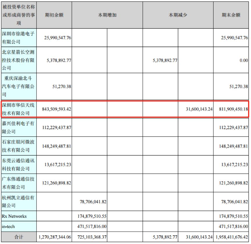 這筆商譽的形成要追溯到2015年。2015年7月,北斗星通以發(fā)行股份及支付現(xiàn)金相結(jié)合的方式購買華信天線100%股權(quán),交易對價10億元,合并形成商譽約8.44億元。