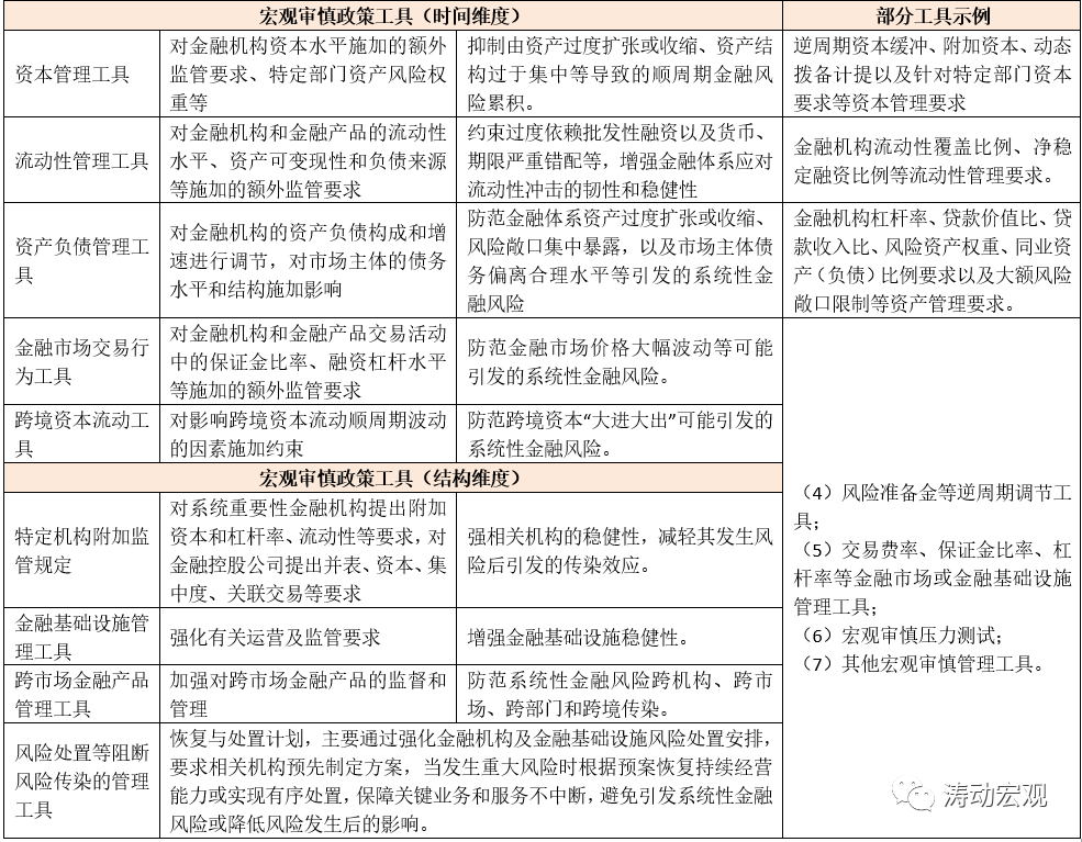 結(jié)構(gòu)維度的工具主要包括特定機(jī)構(gòu)附加監(jiān)管規(guī)定(如系統(tǒng)重要性金融機(jī)構(gòu)和金控公司)、金融基礎(chǔ)設(shè)施管理工具、跨市場(chǎng)金融產(chǎn)品管理工具、風(fēng)險(xiǎn)處置等阻斷風(fēng)險(xiǎn)傳染的管理工具等四大類。
