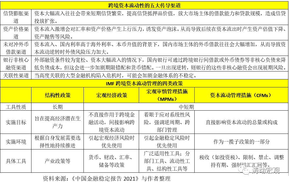 IMF等相關(guān)研究表明,跨境資本流動(dòng)的風(fēng)險(xiǎn)傳導(dǎo)可以分為信貸膨脹、資產(chǎn)價(jià)格、未對(duì)沖外幣借款、銀行非核心融資、關(guān)聯(lián)性五類渠道,且這五類渠道之間會(huì)通過反饋效應(yīng)相互強(qiáng)化。同時(shí)IMF通過《二十國(guó)集團(tuán)基于國(guó)家經(jīng)驗(yàn)得出的資本流動(dòng)管理一致性結(jié)論》(2011年)和《資本流動(dòng)開放與管理:機(jī)構(gòu)觀點(diǎn)》(2012年)等文件構(gòu)建了針對(duì)跨境資本流動(dòng)的政策框架。