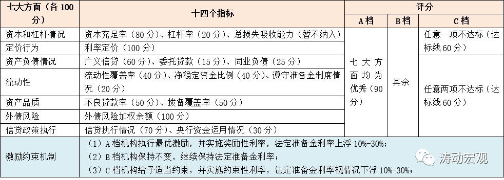 (二)MPA評(píng)估的指包括資本和杠桿情況、資產(chǎn)負(fù)債情況、流動(dòng)性、定價(jià)行為、資產(chǎn)質(zhì)量、跨境融資風(fēng)險(xiǎn)、信貸政策執(zhí)行等七大方面約14個(gè)指標(biāo)。根據(jù)宏觀調(diào)控需要,人民銀行可對(duì)指標(biāo)構(gòu)成、權(quán)重和相關(guān)參數(shù)、評(píng)分方法等進(jìn)行調(diào)整。 實(shí)際上近年來,MPA體系的內(nèi)涵在不斷豐富,覆蓋范圍和適用對(duì)象持續(xù)擴(kuò)大。