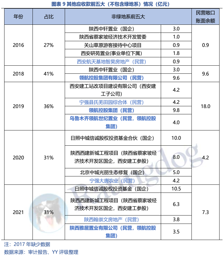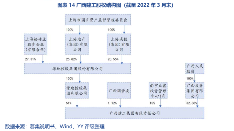 梳理分析下來(lái),可知西安建工混改完成后新簽合同大幅增加,同時(shí),房建占比提升,展業(yè)區(qū)域由西安市內(nèi)拓展至西北區(qū)域;對(duì)綠地風(fēng)險(xiǎn)敞口51億元,其他對(duì)手方以民營(yíng)房企和弱國(guó)企為主,資質(zhì)較弱;綠地展期后,暫無(wú)前臺(tái)成交,預(yù)計(jì)后續(xù)隱含將明顯弱化。廣西建工混改完成后業(yè)務(wù)變化不大,仍以房建為主,集中在廣西展業(yè);與綠地資金牽連不大(或未披露),但業(yè)務(wù)對(duì)手方資質(zhì)弱,以出險(xiǎn)房企、失信民營(yíng)房企和弱城投為主;在年內(nèi)到期或行權(quán)債券約60億元的情況下,綠地展期后隱含急劇弱化,YY隱含飆升至20以上。