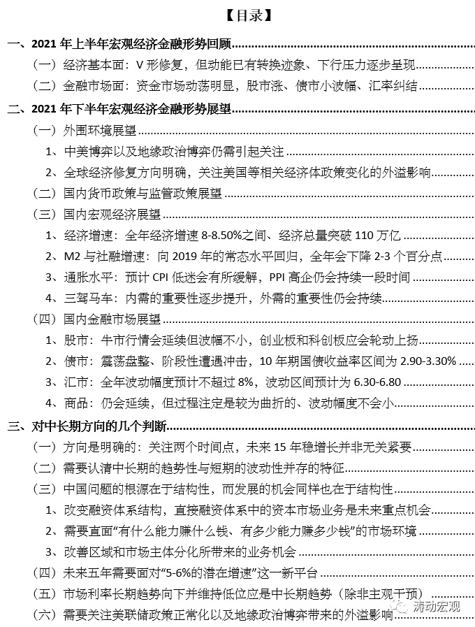 本報(bào)告在2020年底的基礎(chǔ)上,結(jié)合最新情況變化、站在當(dāng)前視角,進(jìn)一步探討2021年下半年的宏觀經(jīng)濟(jì)金融形勢(shì)。