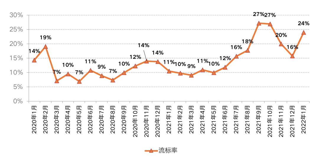 資金流仍面臨較大壓力的房企拿地意愿不強(qiáng),開(kāi)年首月流拍現(xiàn)象較去年年末有所加重,流拍率升至24%。