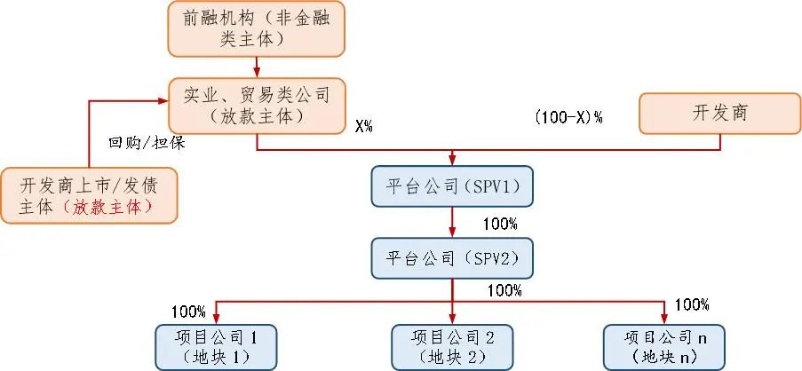 Step2:由該放款主體與開發商共同出資設立平臺公(SPV1)。平臺公司作為承載土地保證金的資金池。