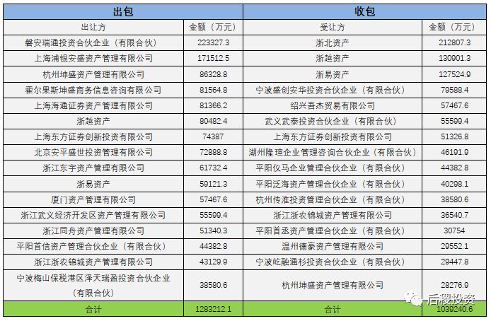 1、三級市場投資機構(gòu)收包出包排行榜
