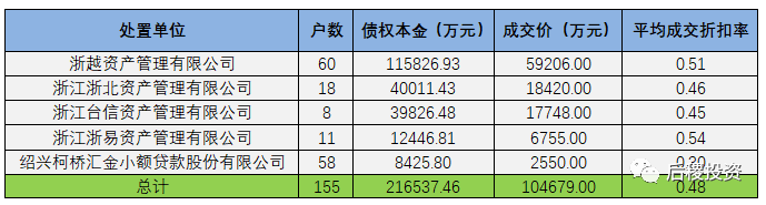 另未透露債權(quán)金額成交明細如下:
