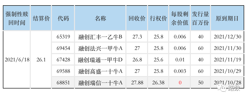 6月18日當天,融創中國5只牛證產品觸及強制收回。其中,融創瑞信一十牛A(68851.HK)最后的剩余價值是0。▼