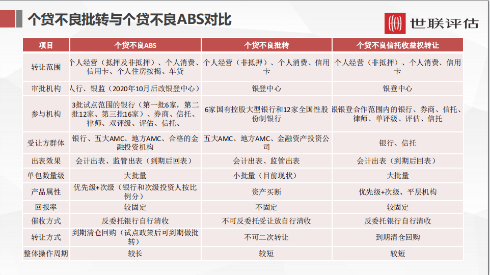 個(gè)貸不良批轉(zhuǎn)與個(gè)貸不良ABS對(duì)比