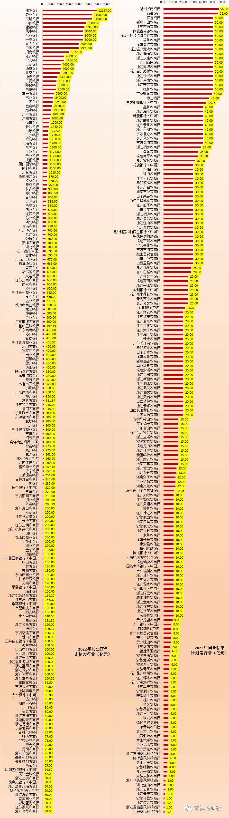 (二)相較于2021年,大部分銀行的同業存單計劃發行量均有明顯增加,且增幅還比較大。