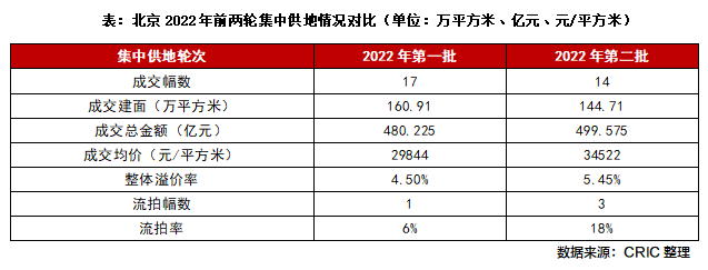 本輪北京土拍整體成交溢價(jià)率為5.45%,較今年首輪提升了近1個(gè)百分點(diǎn),有4宗地塊觸及最高限價(jià),最終3宗地塊成交,還有1宗進(jìn)入競(jìng)高標(biāo)準(zhǔn)方案環(huán)節(jié);但同時(shí)也產(chǎn)生了3宗流拍地塊,流拍率達(dá)到18%,比首輪有所增加,可見不同地塊之間的熱度分化加劇。