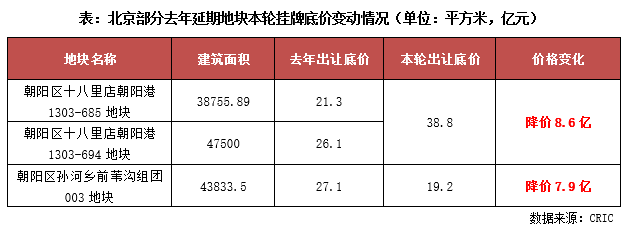去年北京第二輪集中供地中,出現(xiàn)大量延期出讓地塊,其中有部分地塊在本輪重新掛牌,且價(jià)格有大幅度下調(diào):
