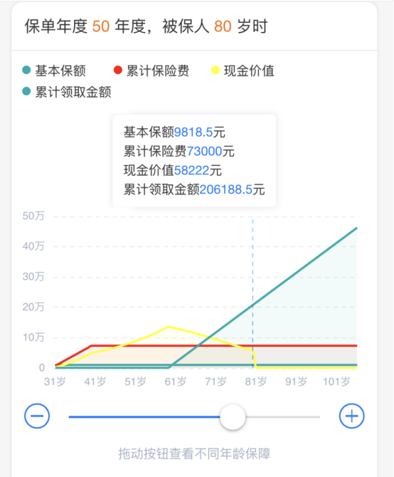 等到小王80歲的時(shí)候,已經(jīng)領(lǐng)取了20.6萬,本金也已經(jīng)翻了近3倍。