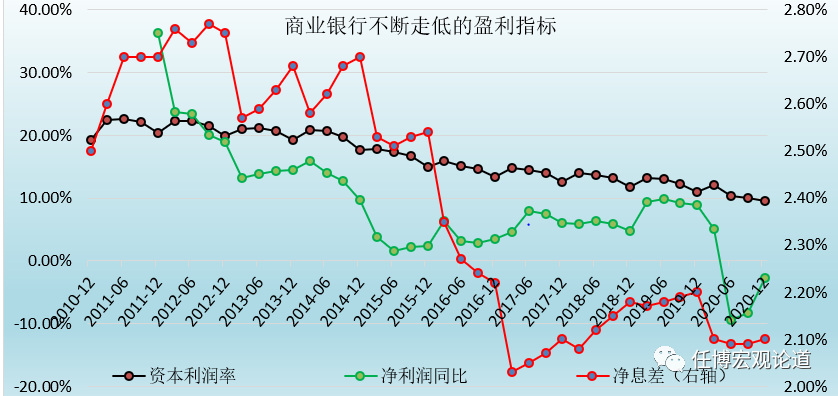 2、同樣是2010年以來,商業(yè)銀行的資本利潤(rùn)率亦由最初的20%以上大幅下滑至目前的10%左右,十年時(shí)間里下降約10個(gè)百分點(diǎn)。
