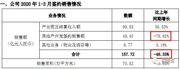 實(shí)際上華夏幸福資金問題早就是久病纏身,據(jù)華夏幸福2020年一季報(bào)顯示,截止2020年3月底華夏幸福短期債務(wù)(短債+一年內(nèi)有息負(fù)債)達(dá)到745.72億元,相較2019年底猛增了140多億元,而貨幣資金只有464.35億元,若考慮到受限資金,現(xiàn)金已難以覆蓋短期債務(wù),資金鏈緊張可見一斑。與此同時(shí),華夏幸福對(duì)外披露2020年一季度銷售業(yè)績,報(bào)告期內(nèi)實(shí)現(xiàn)銷售收入157.72億元,同比下降48.35%。