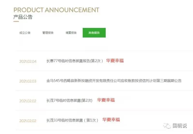 據(jù)悉,雪松信托于春節(jié)前在其官網(wǎng)上陸續(xù)發(fā)布了長惠77號(hào)、長茂7號(hào)、長茂33號(hào)信托計(jì)劃臨時(shí)信息披露報(bào)告。相比平時(shí)頻繁發(fā)布臨時(shí)信息披露的金鶴、金馬、金兔、金虎等歷史遺留項(xiàng)目,雪松信托對(duì)其自主發(fā)行的長X系列產(chǎn)品發(fā)布臨時(shí)信息披露極為少見。