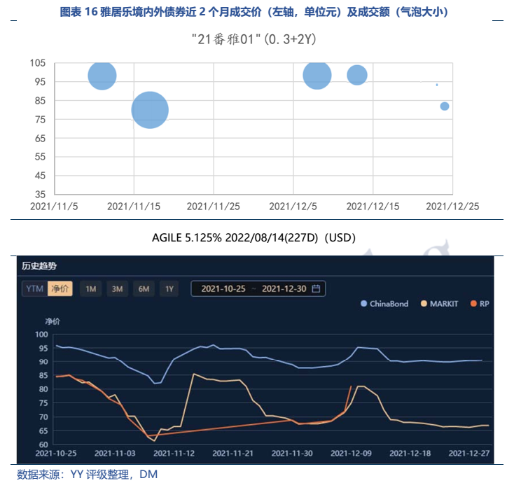 從臨近到期的境內(nèi)外債券成交來(lái)看,價(jià)格走勢(shì)基本與公司的再融資邊際息息相關(guān),可見(jiàn)投資人對(duì)于公司的兌付信心仍取決于公司再融資情況。
