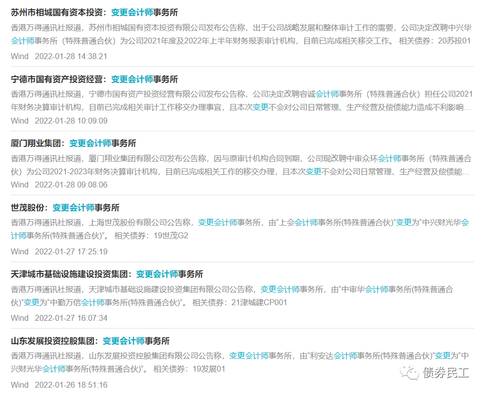 這是債券發(fā)行人近期披露的擬變更會計師事務所的部分公告: